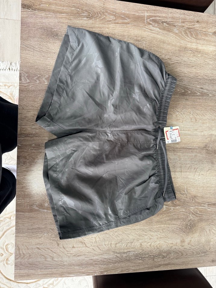 Dagi Gri renkli, bol kesim ve kemerli erkek mini şort, dış mekan kullanımı için sade ve desenizdir. Hiç kullanılmadı