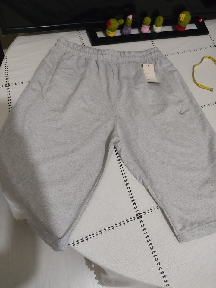 Gri renkli, bol kesim erkek mini şort, yumuşak ve sıcak kumaştan, spor ve günlük sokak stiline uygun. Rahat ve şık tasarım. ♂️ sıfırdır orijinal değil