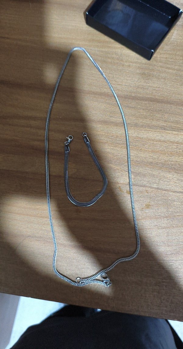 Gri renkte, minimalist tasarımlı erkek kolyesi ve bileklik seti. Sokak stili ve bohem tarzlar için uygun.