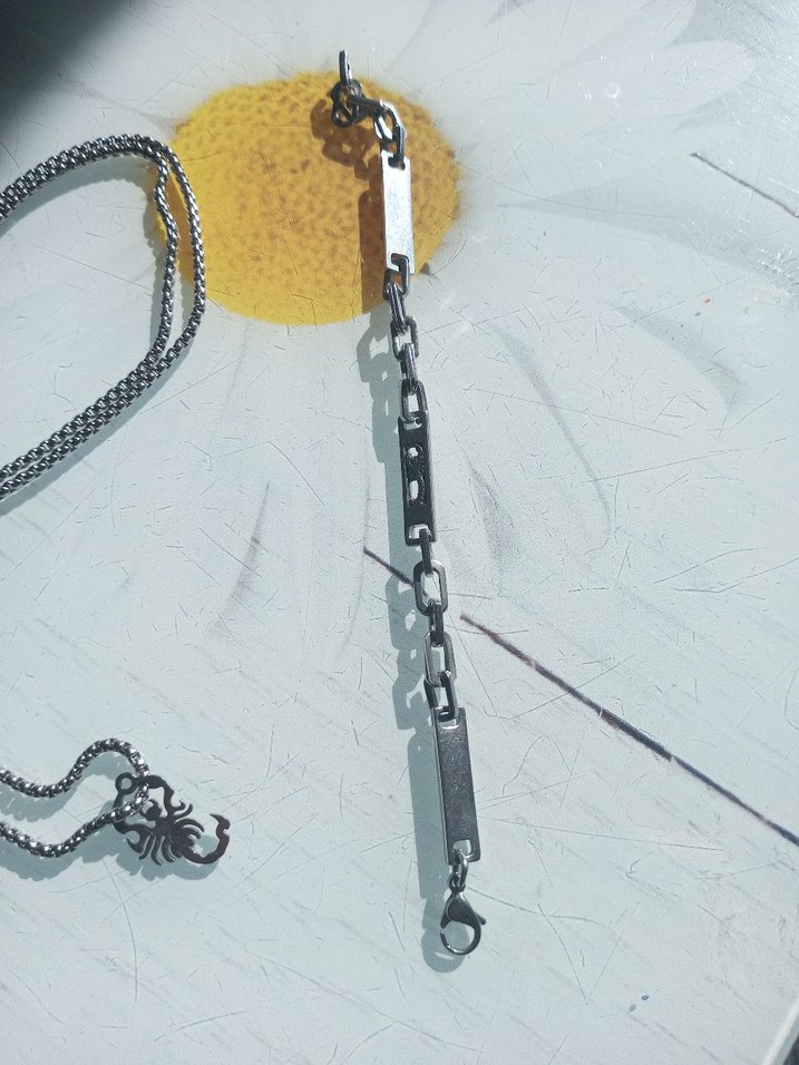 Gri renkli minimalist zincir ve altın detaylar içeren erkek kolyesi, avangart ve şık tarzları birleştirir. Trendsetterlar için ideal. ✨