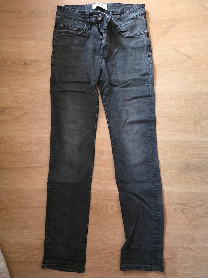 Gri renkli, normal boy ve regular fit erkek jean. Denim kumaştan, tokalı detaylı ve günlük kullanıma uygun.