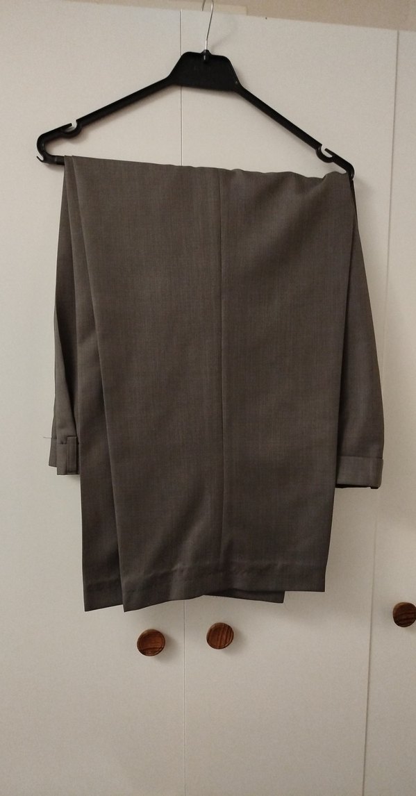 Gri renkte, sentetik kumaştan üretilmiş, regular fit ve normal boyda, drapeli erkek ofis pantolonu.