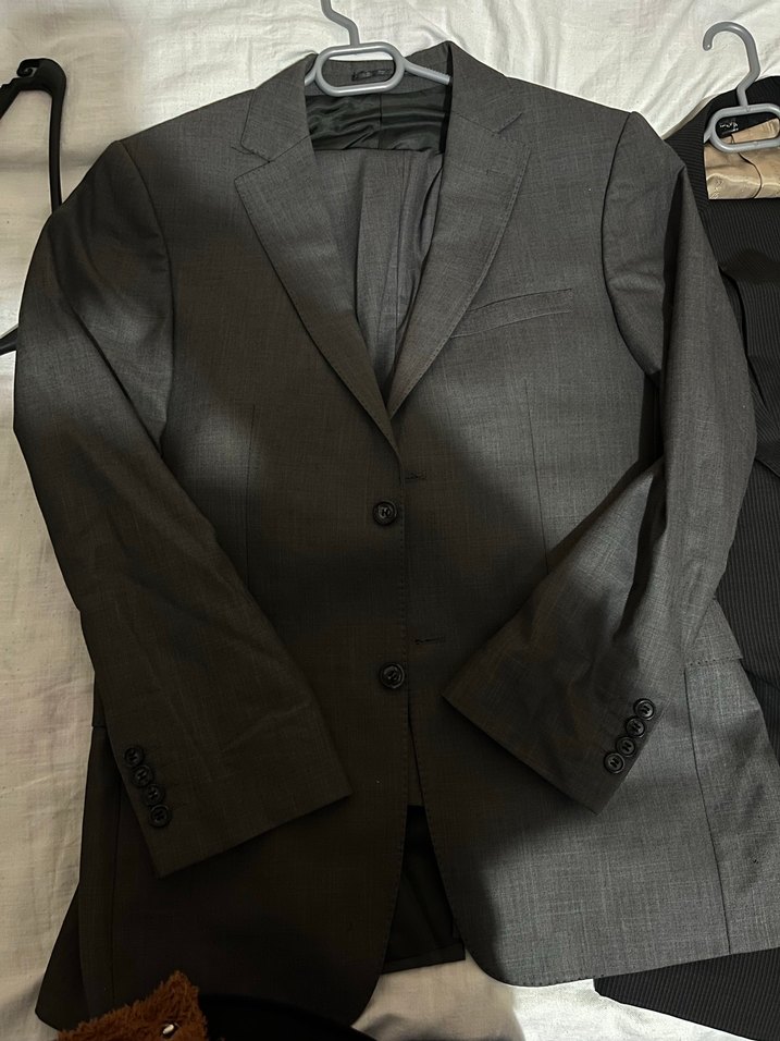 Gri renkli, klasik kesim erkek takım elbise. Uzun kollu, düğmeli ve ofis kullanımı için uygundur. Notch yaka ile sade ve şık görünüm sunar.
