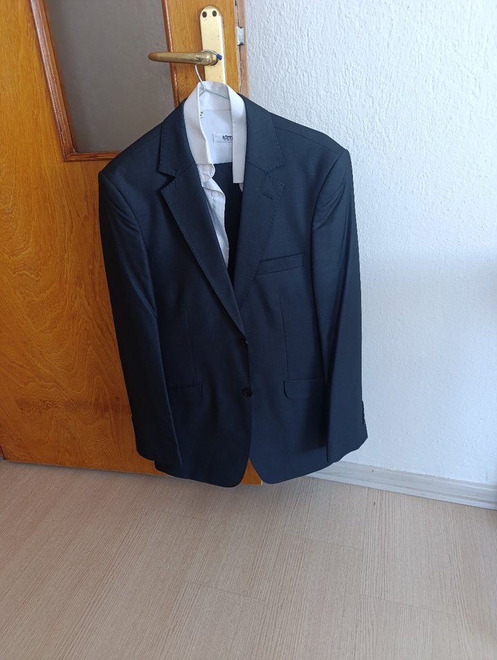 Gri renkli, klasik kesim, uzun kollu ve düğmeli erkek takım elbisesi, ofis ve iş ortamları için uygundur. ️