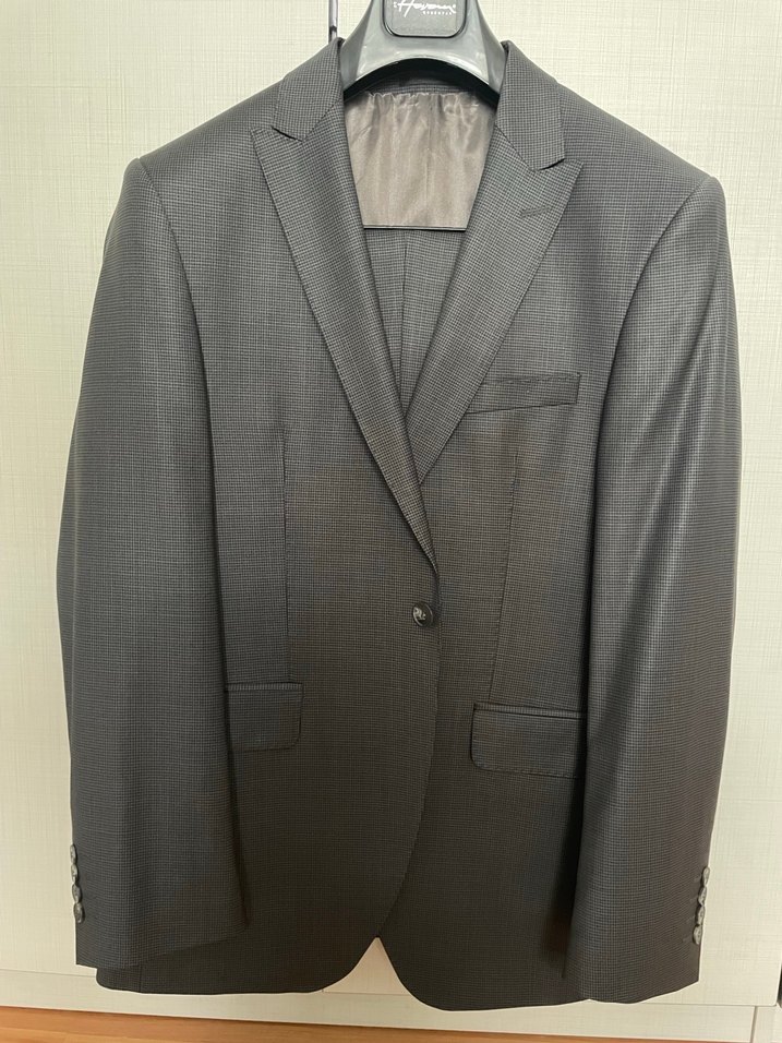 Gri renkte, klasik modern tarzda, normal boy ve düğmeli erkek takım elbise ceketi. Ofis kullanımı için uygun, uzun kollu ve desen içermeyen model.Pantolonu da mevcuttur