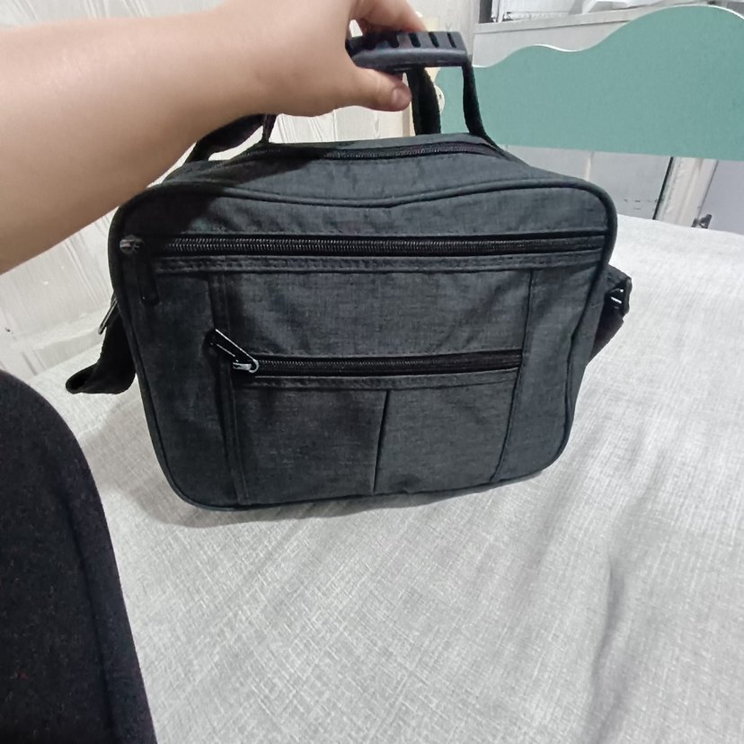 Gri renkte, fermuarlı cepleri olan erkek omuz çantası. Trendy casual ve iş stiline uygun, desensiz sade tasarım sunar.