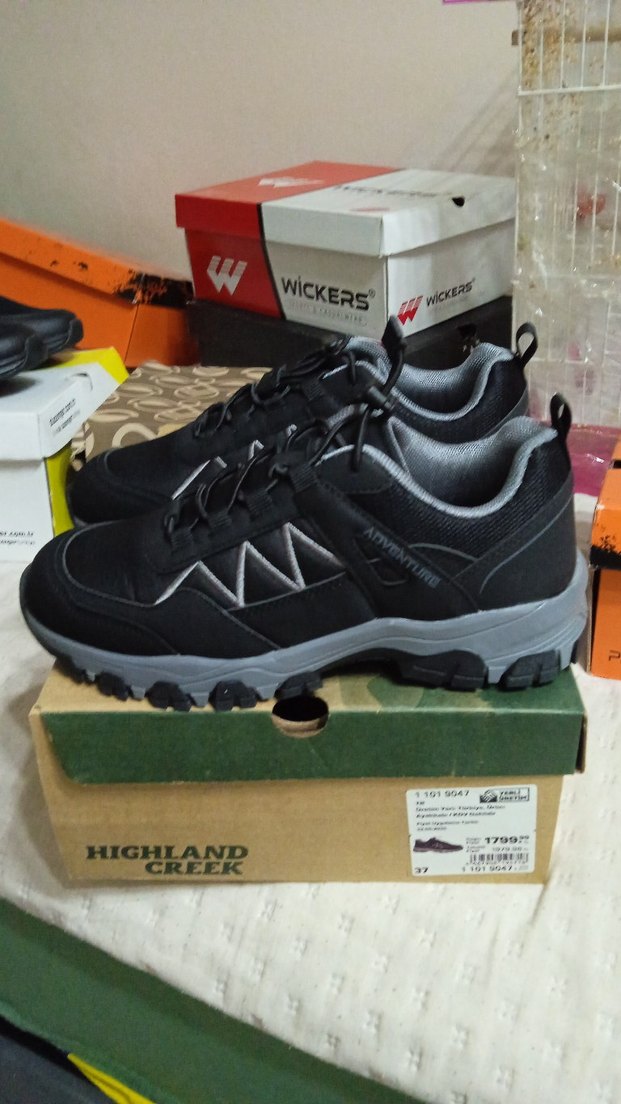 Bu bağcıklı erkek outdoor ayakkabılar, gri baskılı tasarımı ve dayanıklı kauçuk tabanıyla street wear ve rahat athleisure tarzına uygundur. Üzerinde 'WICKERS' markası bulunur.