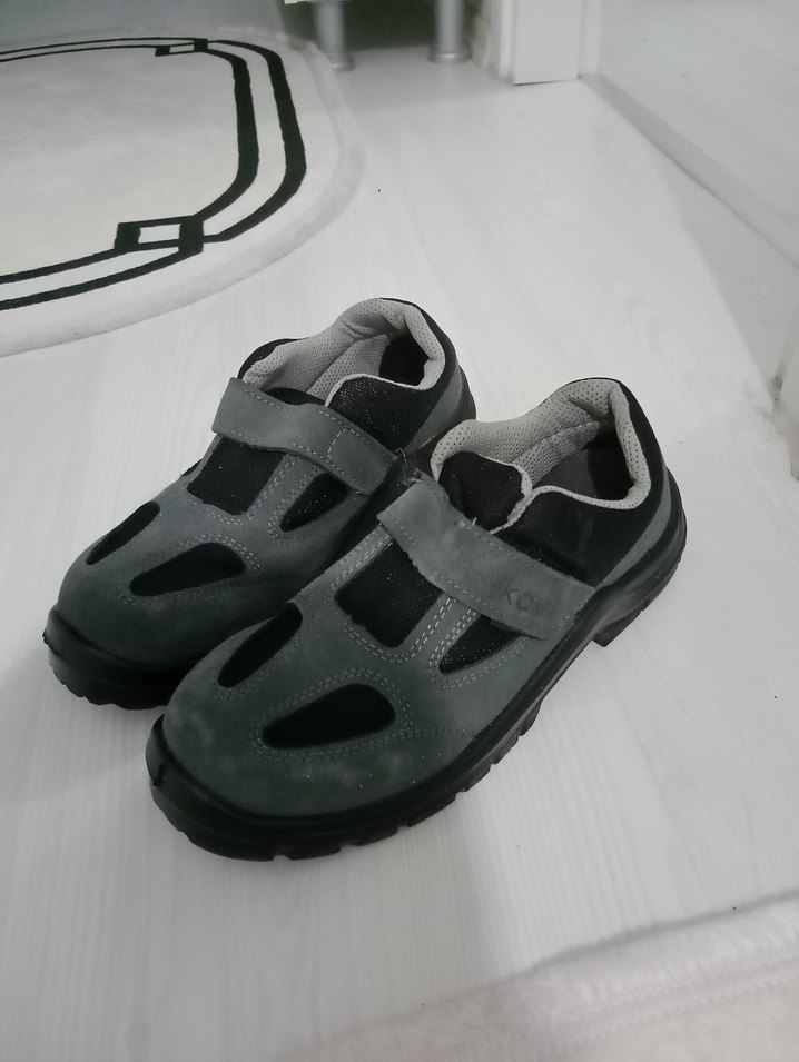 Gri renkli, kauçuk tabanlı erkek iş ayakkabısı kullanılmamış 43 numara