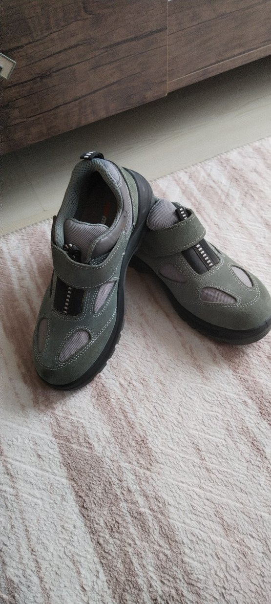 Gri renkli, kauçuk tabanlı erkek outdoor ayakkabısı. Velcro bantlı, günlük kullanım ve sokak stili için uygun.