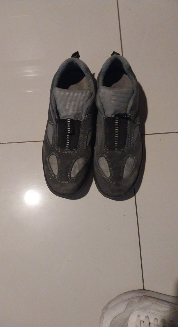 Gri renkte, Velcro kapamalı erkek outdoor ayakkabısı. Kauçuk malzemeden üretilmiş, günlük kullanım ve sokak stili için uygun.