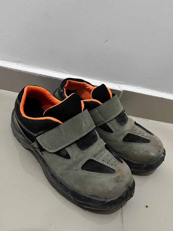 Gri erkek outdoor biker ayakkabısı, velcro kapamalı, kauçuk tabanlı ve sportif şık tasarıma sahip. Outdoor aktiviteler için uygun. İş ayakkabısı
