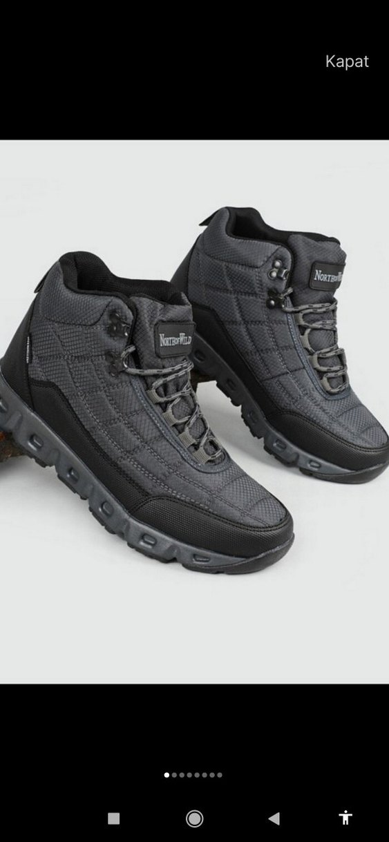 Gri yılan desenli, kemerli erkek outdoor botları. Kauçuk malzemeden üretilmiş, dayanıklı ve trend stil sunar. markası ayakkabının üzerinde yazıyor.