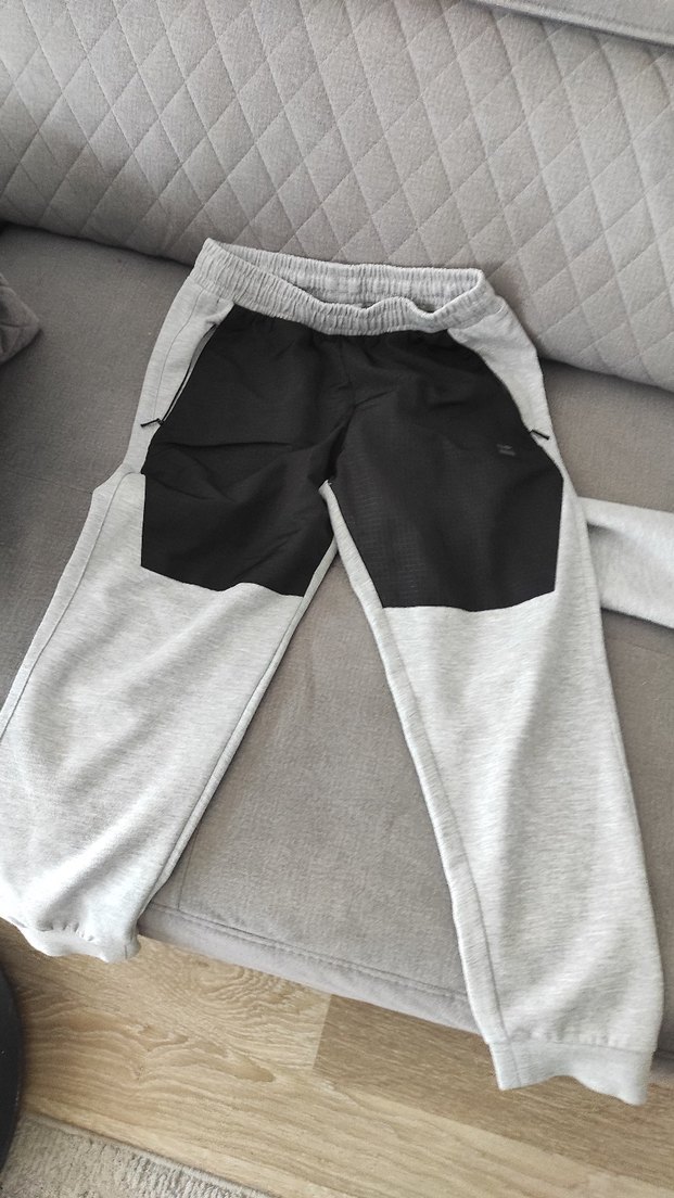 Gri renkli, siyah detaylı ve velcro kapamalı erkek outdoor rahat kesim eşofman. Yumuşak ve sıcak dokulu kumaştan, günlük kullanıma uygun midi boy.