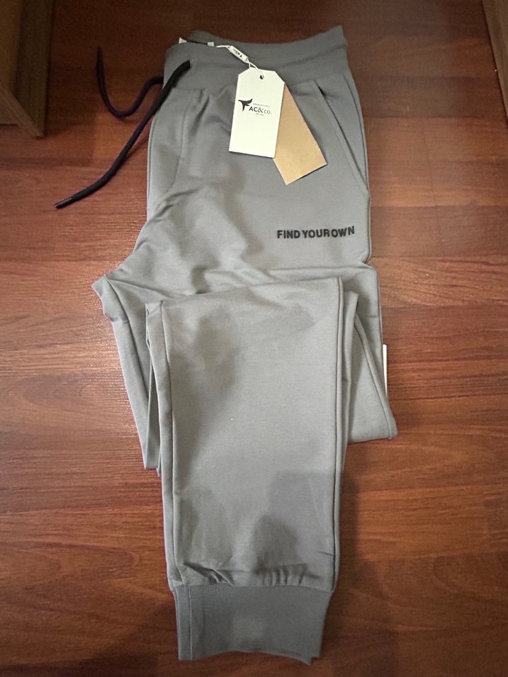 Gri renkte, rahat kesim erkek outdoor eşofman altı.