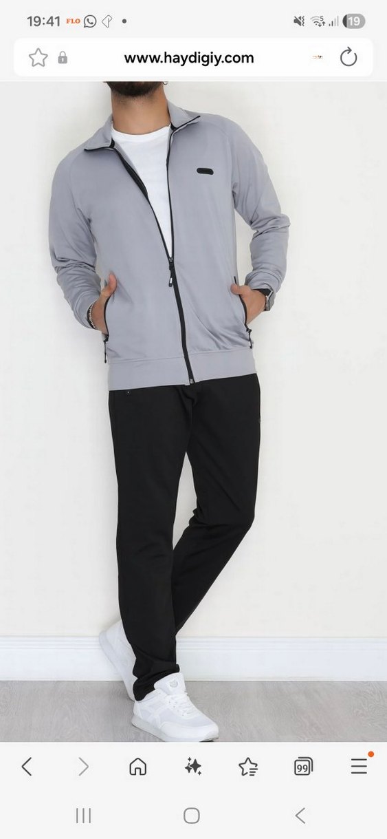 Gri renkte, fermuarlı cepleri bulunan, sentetik kumaştan yapılmış erkek outdoor sweatpants. Rahat kesimi günlük kullanıma uygundur. ️
