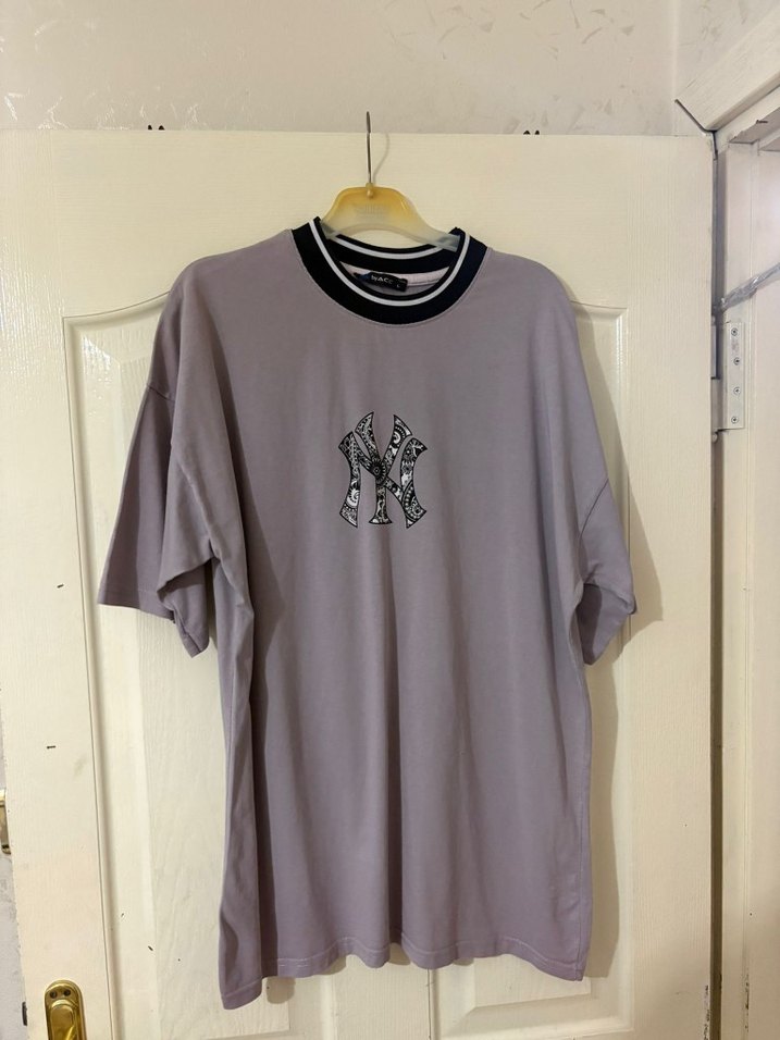Gri renkli, kısa kollu ve oversize kesime sahip erkek tişörtü. Önünde baskılı desen bulunur, sentetik kumaştan üretilmiş, günlük kullanıma uygundur.