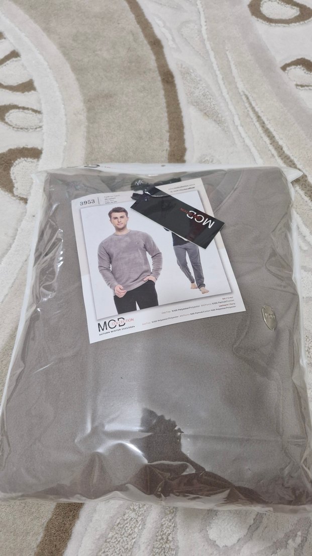 Gri renkte, bisiklet yaka ve uzun kollu erkek pijama takımı. Salaş kesimi ve baskılı detaylarıyla MC markadan rahat ve şık bir parça.