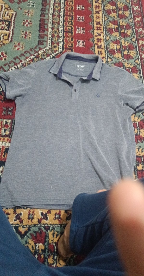 Gri renk, düğmeli yakalı ve kısa kollu, bol kesim erkek polo tişört. Yumuşak tekstil kumaştan, günlük rahat kullanım için uygundur.