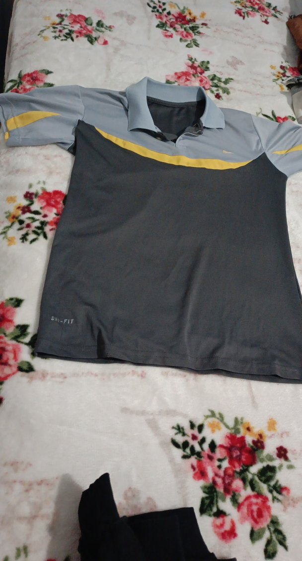 Gri renkli, kısa kollu, yakalı ve drapeli tasarıma sahip, baskılı detaylı, sentetik kumaştan yapılmış erkek polo tişörtü. Spor ve günlük sokak modası için uygundur. ♂️ çok az özrü vardır fotoğraf koyulmuştur.