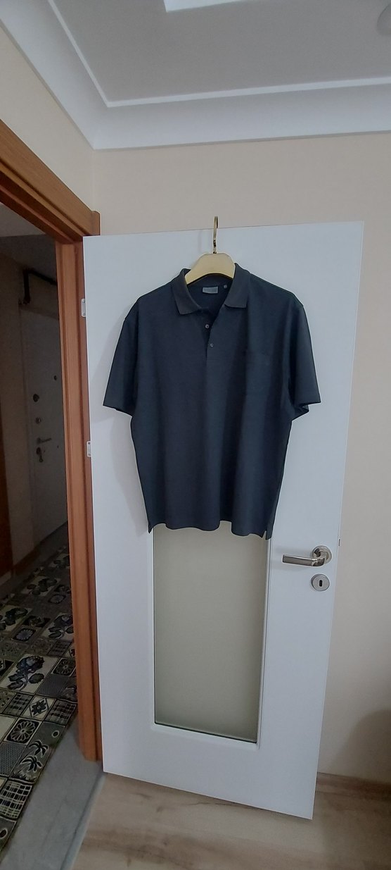 Gri renkte, polo yaka ve kısa kollu erkek tişörtü. Sentetik kumaştan, bol kesimli ve normal boyda. Günlük kullanıma uygun, rahat ve şık bir sokak stili tişört.Cristian Berg orjinal urun yakasinda kat izi var herhangi bir sorunu yok alana hayirli olsun