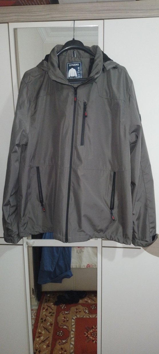 Gri renkte, 5xl beden sentetik kumaştan, bol kesim ve uzun kollu, fermuarlı cepli erkek montu. Outdoor ve sokak stili için uygun.