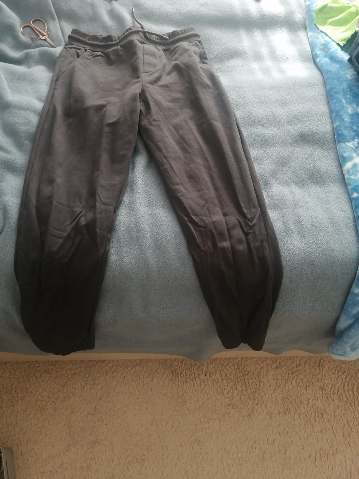 Gri renkte, yumuşak ve sıcak kumaştan yapılmış erkek için rahat kesim pantolon. Trendy casual ve streetwear stilinde, zahmetsiz şıklık sunar. Kısa olduğu için giyilmedi yıkandı kaldırıldı sorunsuz en ufak bi yıpranma yok.