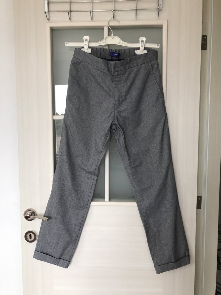 Gri renkte, regular fit kesime sahip erkek denim pantolon. Ofis ve gündelik kullanıma uygun, tokalı ve desen içermeyen sade tasarım. Erkek kısa paça gri kendinden desenli pantolon hiç kullanılmamıştır boy 90 cm bel 36 cm arkadan biraz esneme payıda var