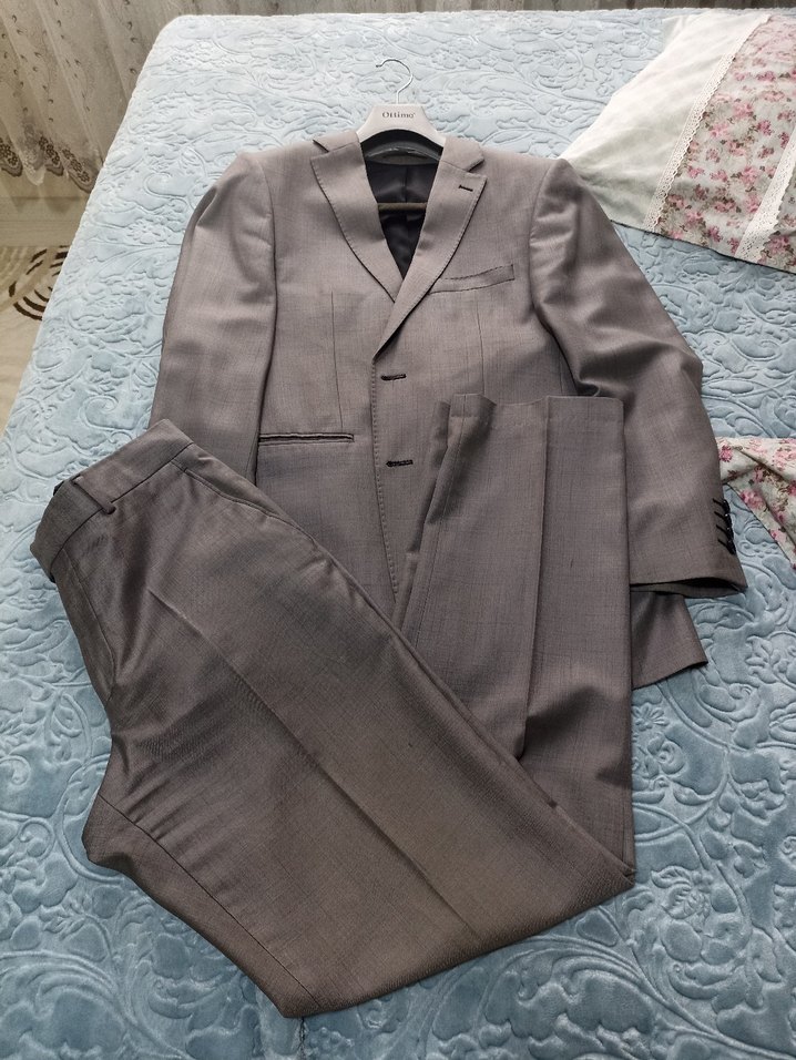 Gri, düğmeli, klasik yakalı erkek takım elbisesi. Uzun kollu, desen içermeyen ve ofis için uygun regular fit model. içinde etiketi belli olmuyor ama ölçülerini ekledim pantolonda hafif renk kusuru var belli bile olmuyor yinede belirtmek istedim fiyatını da uygun yazıyorum