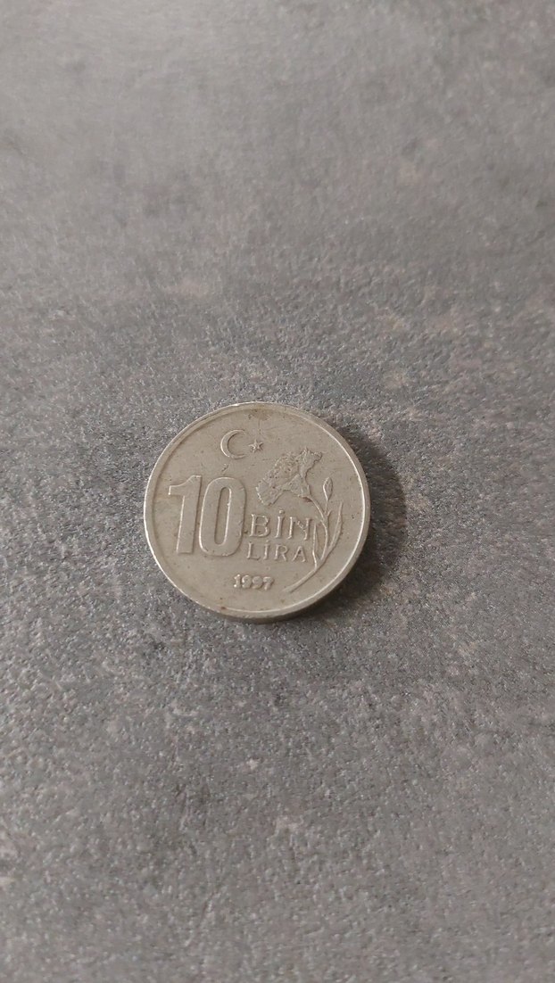 1997 tarihli, 10 bin lira yazılı gri erkek rozeti. Minimalist ve sade detaylara sahip metal görünümünde bir rozet.