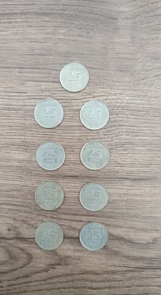 9 adet 25 kuruş.. 1 Adet fiyatı üzerinden ilana verilmiştir. Koleksiyon ve hatıra için..