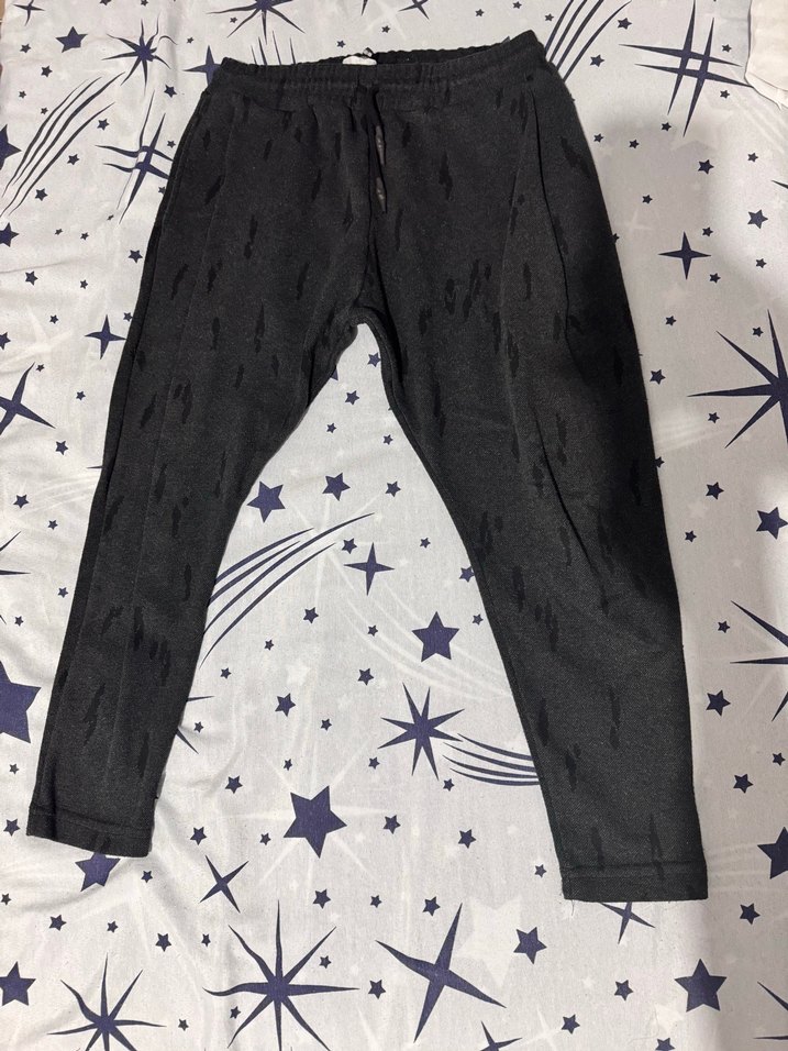Koyu gri renkli, erkek salaş kesim eşofman.Yumuşak sentetik kumaştan üretilmiş şalvar eşofman