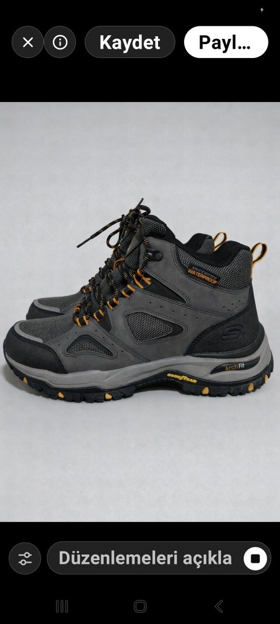 Gri renkli, bağcıklı erkek outdoor spor ayakkabısı, su geçirmez malzeme Kauçuk taban dayanıklılık ve konfor sağlar. ️Sadece iki kez giyildi Sıfır ayarında defosuz hiçbir kusuru yoktur