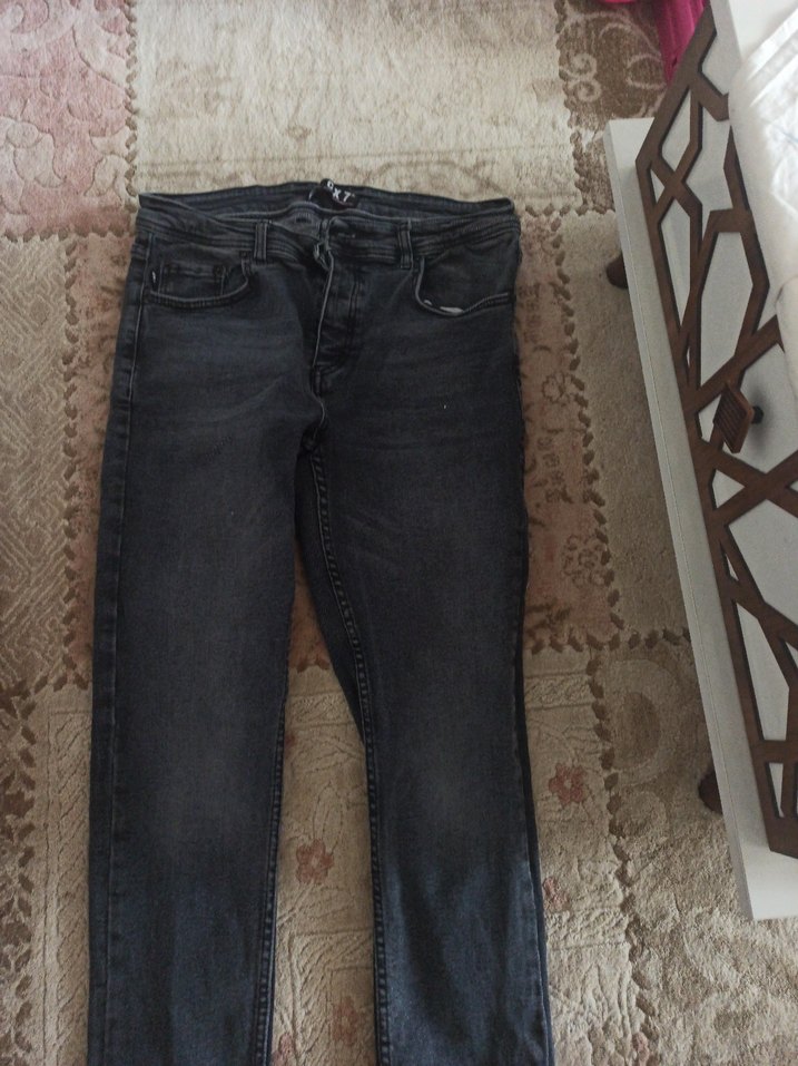 Gri renkli, kemerli ve slim fit kesime sahip erkek denim pantolon. Günlük kullanıma uygun, desen içermeyen rahat bir model.