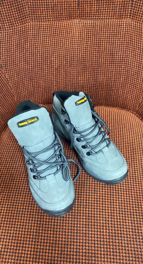 Gri renkte, tokalı erkek botları. Sokak stili ve athleisure tarzına uygun, desensiz tasarıma sahip.