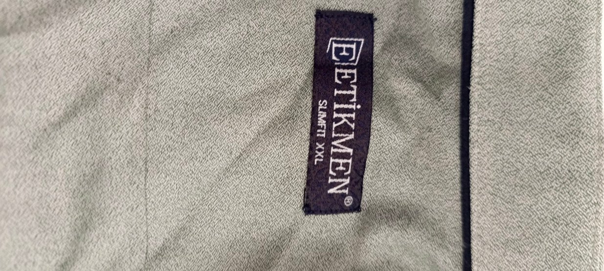 Gri renkte, "EETiKMEN SLIMFIT XXL" etiketi bulunan erkek sokak stili rozeti. Rahat ve bol kesim tarzını yansıtır.
