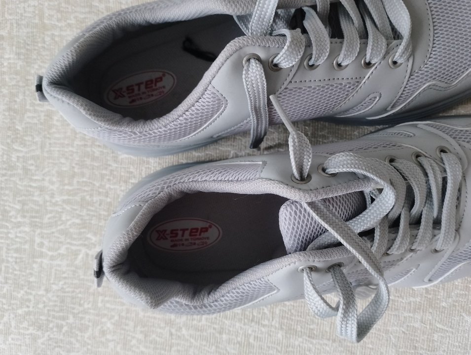 Gri renkli, elastik detaylı erkek spor ayakkabısı. Kauçuk tabanlı ve kama topuklu, athleisure ve sokak stili için uygundur. İçinde X-STEP logosu bulunur.