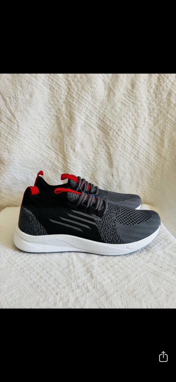 Gri renkli, bağcıklı erkek spor ayakkabısı, yumuşak triko üst ve beyaz kauçuk taban ile sokak stili ve spor rahatlığını bir araya getirir.