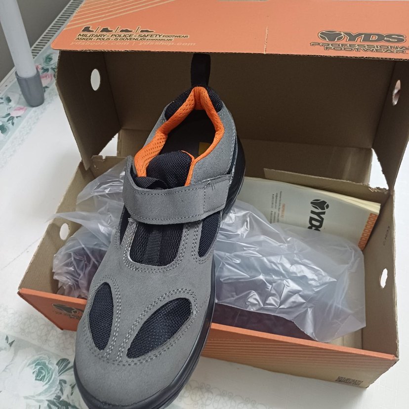 Gri Erkek Spor Ayakkabı - Cırt Cırtlı YDS işçi ayakkabı kutusund