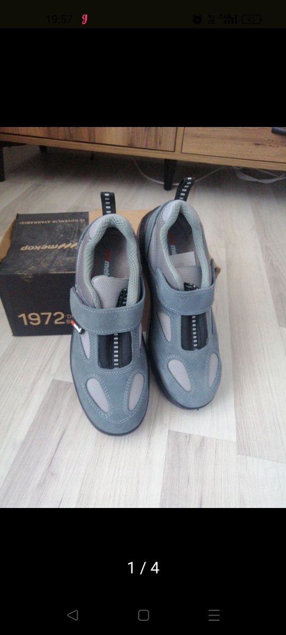 Gri renkli, çelik burunlu iş ayakkabısı.