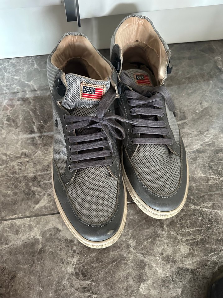 Gri renkte, tokalı ve kauçuk tabanlı erkek spor ayakkabısı. Sokak stili için uygun, günlük kullanıma rahat ve şık bir model.