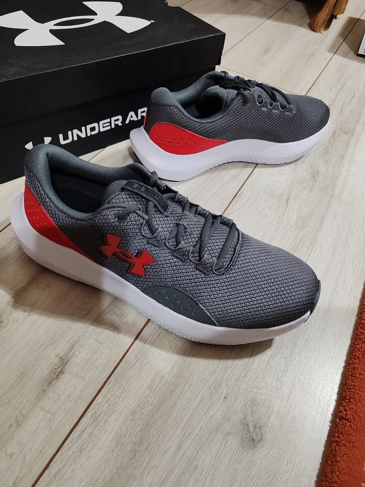 Gri renkte, kauçuk tabanlı erkek spor ayakkabısı. Kırmızı detaylarla sade ve şık tasarım, under armour markalı. Spor ve günlük kullanım için uygun.