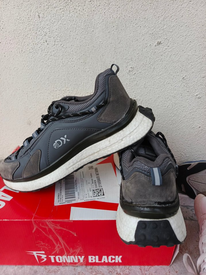 Gri renkli, baskılı detaylara sahip erkek spor ayakkabısı, Velcro kapamalı ve dayanıklı kauçuk tabanlıdır. Marka: Dcovry orijinal