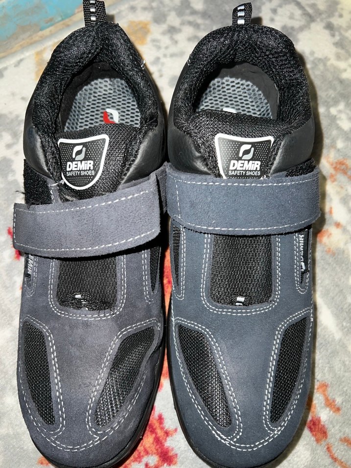 Gri renkte, Velcro bantlı ve kauçuk tabanlı erkek spor ayakkabısı, baskılı desenlerle biker tarzında tasarlanmıştır. ️