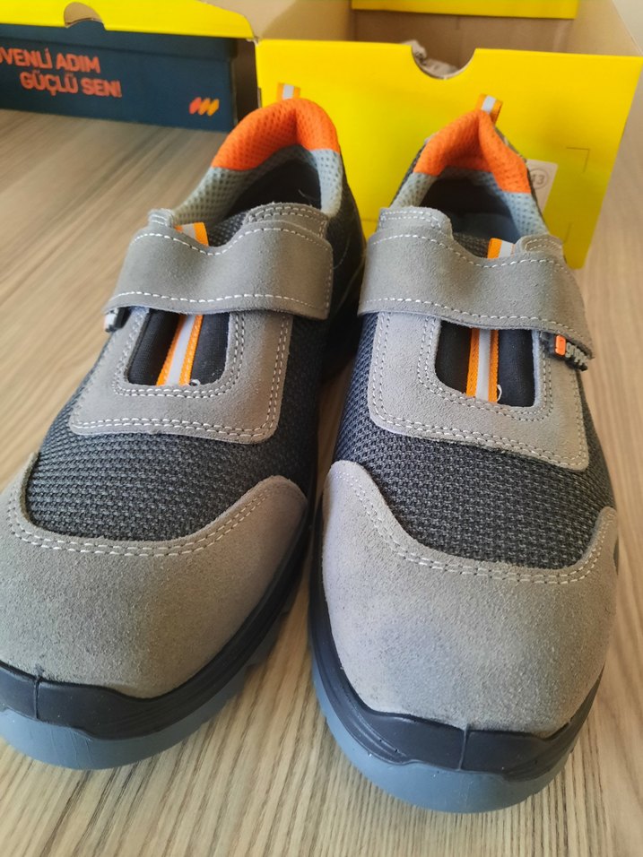 Gri renkli, velcro bantlı erkek spor ayakkabısı. Kauçuk tabanlı, rahat ve sokak stiline uygun tasarım.