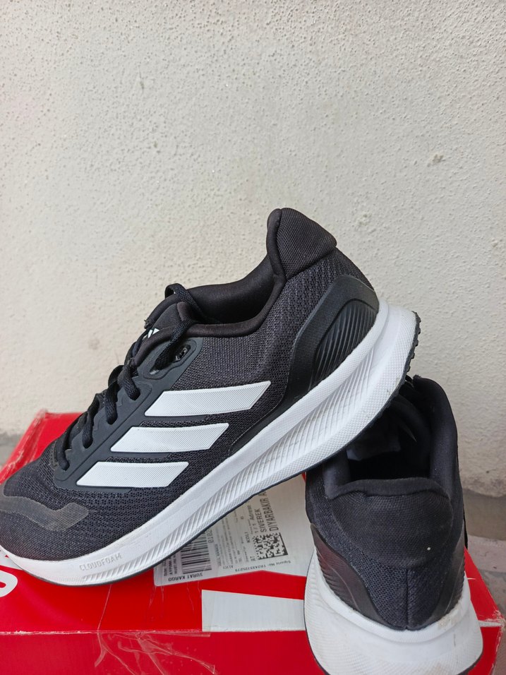 Gri renkli, baskılı desenli erkek spor ayakkabısı, kaymaz kauçuk taban ve Velcro detaylarıyla rahat kullanım sağlar.