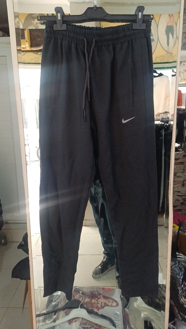 Sentetik kumaştan, bol kesim gri erkek eşofman. Yanlarda yırtmaç detayı ve normal boy. Spor için uygun, rahat ve şık görünümlü.