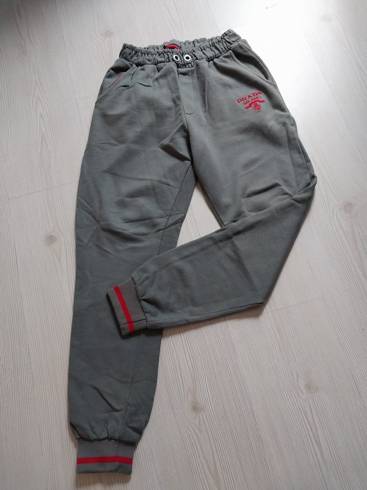 Gri renkte, bel detaylı ve rahat kesim erkek spor eşofman. Yumuşak ve sıcak kumaştan, normal boyda, kırmızı detaylı manşetlere sahip.