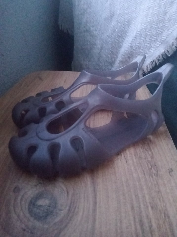 Gri renkte 32 numara, tokalı tasarıma sahip erkek su ayakkabısı. Kauçuk malzemeden üretilmiş, günlük kullanım ve avant-garde stile uygun.