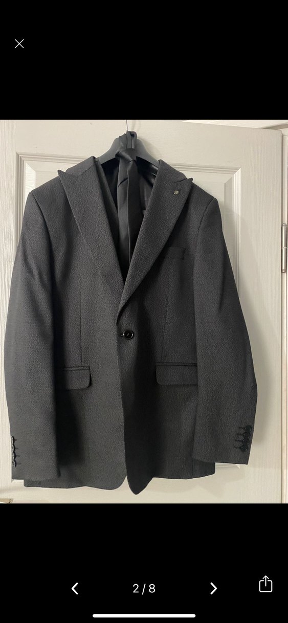 Gri renkli, düğmeli, normal uzunlukta midi erkek takım elbise Uzun kollu ve klasik modern tarzda, ofis için uygundur.