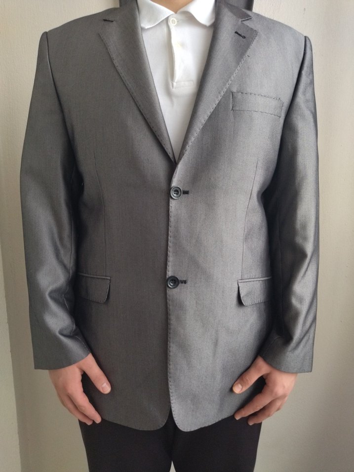 sadece iki kere giyildi hiçbir deformesi yok. kumaşı gri gümüş hafif parlak. pantolon bel çevresi 96 cm, iç bacak boyu 76 cm, iki koltuk arası 57 cm